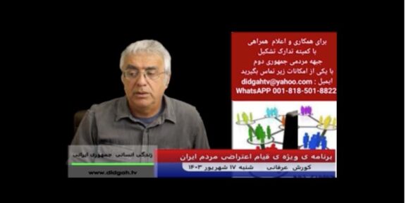 برنامه ویژه قیام اعتراضی – (شماره 521) – کورش عرفانی برنامه ویژه قیام اعتراضی – (شماره 521) – کورش عرفانی leave a reply لغو پاسخبرای نوشتن دیدگاه باید وارد بشوید. مقالات بیشتر نویسنده برنامه ویژه قیام اعتراضی – (شماره 535) – کورش عرفانی Video سپتامبر 25, 2024 برنامه ویژه قیام اعتراضی - (شماره 535) - کورش عرفانی برنامه ویژه قیام اعتراضی – (شماره 536) – کورش عرفانی Video سپتامبر 26, 2024 برنامه ویژه قیام اعتراضی - (شماره 536) - کورش عرفانی برنامه ویژه: اقتصاد جنگزده پیش از آغاز جنگ – کورش عرفانی Video اکتبر 22, 2024 برنامه ویژه: اقتصاد جنگزده پیش از آغاز جنگ - کورش عرفانی… برنامه ویژه قیام اعتراضی – (شماره 537) – کورش عرفانی Video سپتامبر 26, 2024 برنامه ویژه قیام اعتراضی - (شماره 537) - کورش عرفانی برنامه ویژه قیام اعتراضی – (شماره 516) – کورش عرفانی Video آگوست 29, 2024 برنامه ویژه قیام اعتراضی - (شماره 516) - کورش عرفانی برنامه کاوه آهنگر: کورش عرفانی – ۲۰ مهر ۱۴۰۳ – ۱۱ اکتبر ۲۰۲۴ Video اکتبر 12, 2024 برنامه کاوه آهنگر: کورش عرفانی - ۲۰ مهر ۱۴۰۳ - ۱۱ اکتبر ۲۰۲۴… برنامه ویژه قیام اعتراضی – (شماره 527) – کورش عرفانی Video سپتامبر 12, 2024 برنامه ویژه قیام اعتراضی - (شماره 527) - کورش عرفانی برنامه ویژه قیام اعتراضی – (شماره 541 – شماره پایانی) – کورش عرفانی – Video اکتبر 4, 2024 برنامه ویژه قیام اعتراضی - (شماره 541 - شماره پایانی) - کورش… برنامه ویژه قیام اعتراضی – (شماره 523) – کورش عرفانی Video سپتامبر 7, 2024 برنامه ویژه قیام اعتراضی - (شماره 523) - کورش عرفانی مقالات مرتبط در همین مورد برنامه ویژه: انتقال قدرت تنها چشمانداز خروج از بنبست – کورش عرفانی برنامه ویژه: انتقال قدرت تنها چشمانداز خروج از بنبست - کورش عرفانی برای دیدن و یا دانلود فایل ویدیویی بر روی لینک زیر کلیک کنید. برنامه همراه با مزدبگیران: مبارزه سازمان یافته و متشکل برنامه همراه با مزدبگیران ۱۵ اسفند ۱۳۹۶ - ۶ مارس ۲۰۱۸ از تلویزیون دیدگاه فایل صوتی این برنامه در دسترس است https://soundcloud.com/didgahtv/6jozjfa8kqrm سه شنبه ها ساعت… برنامه ویژه قیام اعتراضی – (شماره 527) – کورش عرفانی برنامه ویژه قیام اعتراضی - (شماره 527) - کورش عرفانی برنامه پنجره گفتگو: گفتگو با نمایندگان تشکل های سیاسی در مورد جنبش اعتراضی مردم ایران برنامه ای از کامران مهرپور میهمانان این برنامه: محسن ابراهیمی - حزب کمونیست کارگری و کامبیز قائم مقام - سازمان های جبهه ملی ایران در خارج کشور برنامه… برنامه کاوه آهنگر: کورش عرفانی – ۲۴ امرداد ۱۴۰۴ – ۱۵ آگوست ۲۰۲۵ برنامه کاوه آهنگر: کورش عرفانی – ۲۴ امرداد ۱۴۰۴ – ۱۵ آگوست ۲۰۲۵ برای دیدن و یا دانلود فایل ویدیویی بر روی لینک زیر کلیک کنید.